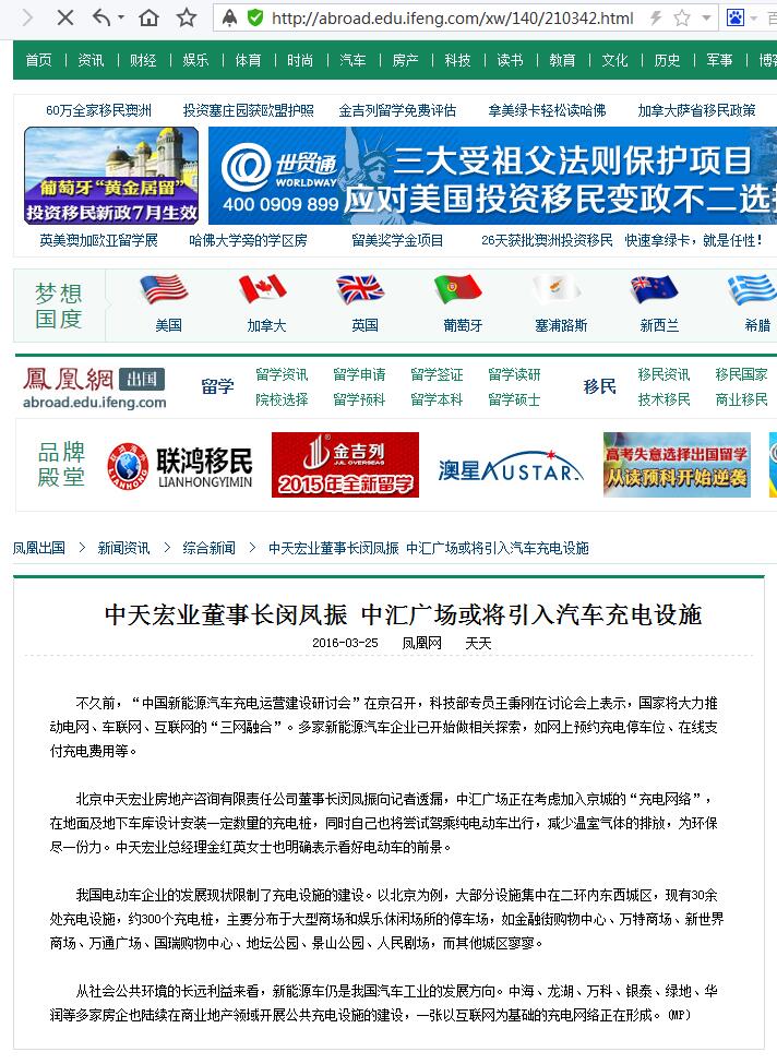 中天宏业董事长闵凤振 中汇广场或将引入汽车充电设施(凤凰)